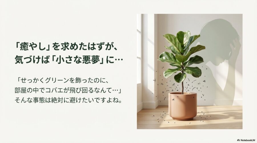 そんな不安を抱えて、購入をためらっている方は多いのではないでしょうか。せっかく癒やしを求めてグリーンを飾ったのに、部屋の中でコバエが飛び回るような事態になってしまっては、リラックスどころではありませんよね。