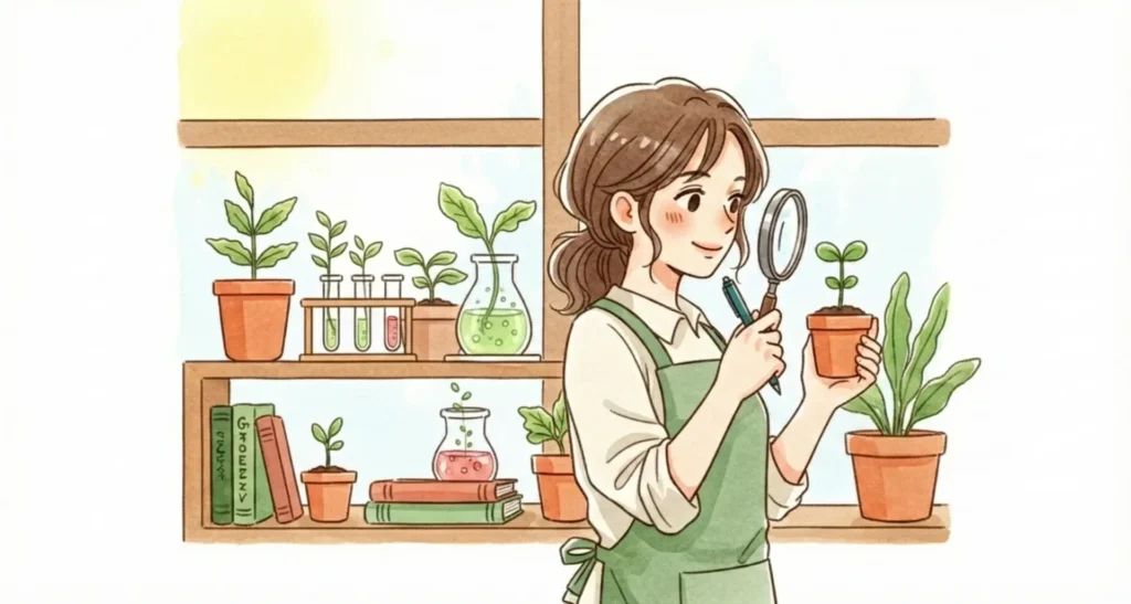 3. 枯らさないための「失敗回避ログ」 植物を枯らしてしまうのは、あなたのせいではありません。「植物のサイン」を知らなかっただけです。 「なぜ枯れたのか?」を論理的に分析し、「いつ水をやるか」「どこに置くか」といったシンプルなルールをご紹介します。感覚ではなく、ちょっとしたコツで植物は元気に育ちます。